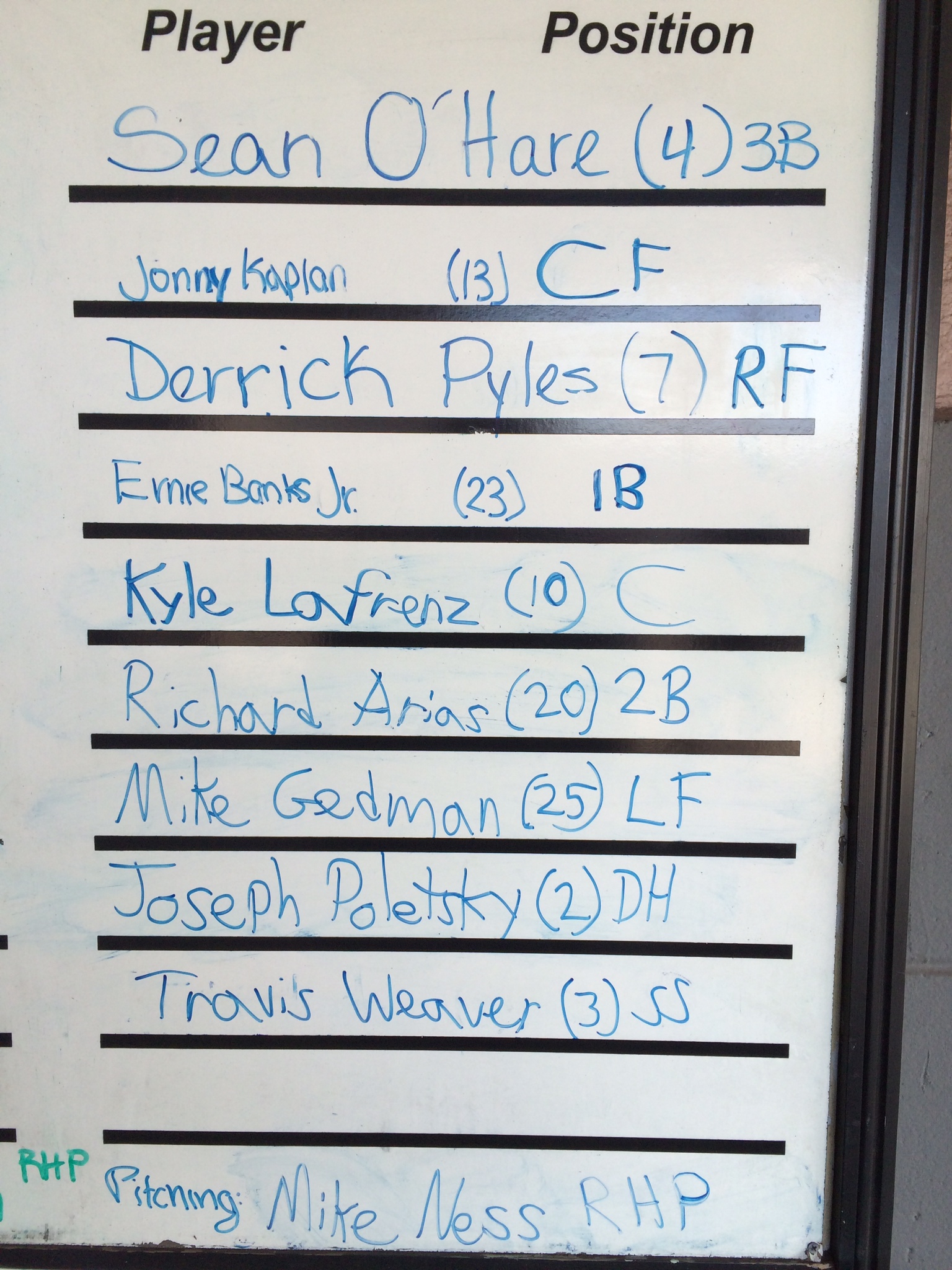 The last Bears lineup at Riverfront. With ace Mike Ness on the mound, this group beat Trois Riveres 5-4 on Aug. 30, 2013.