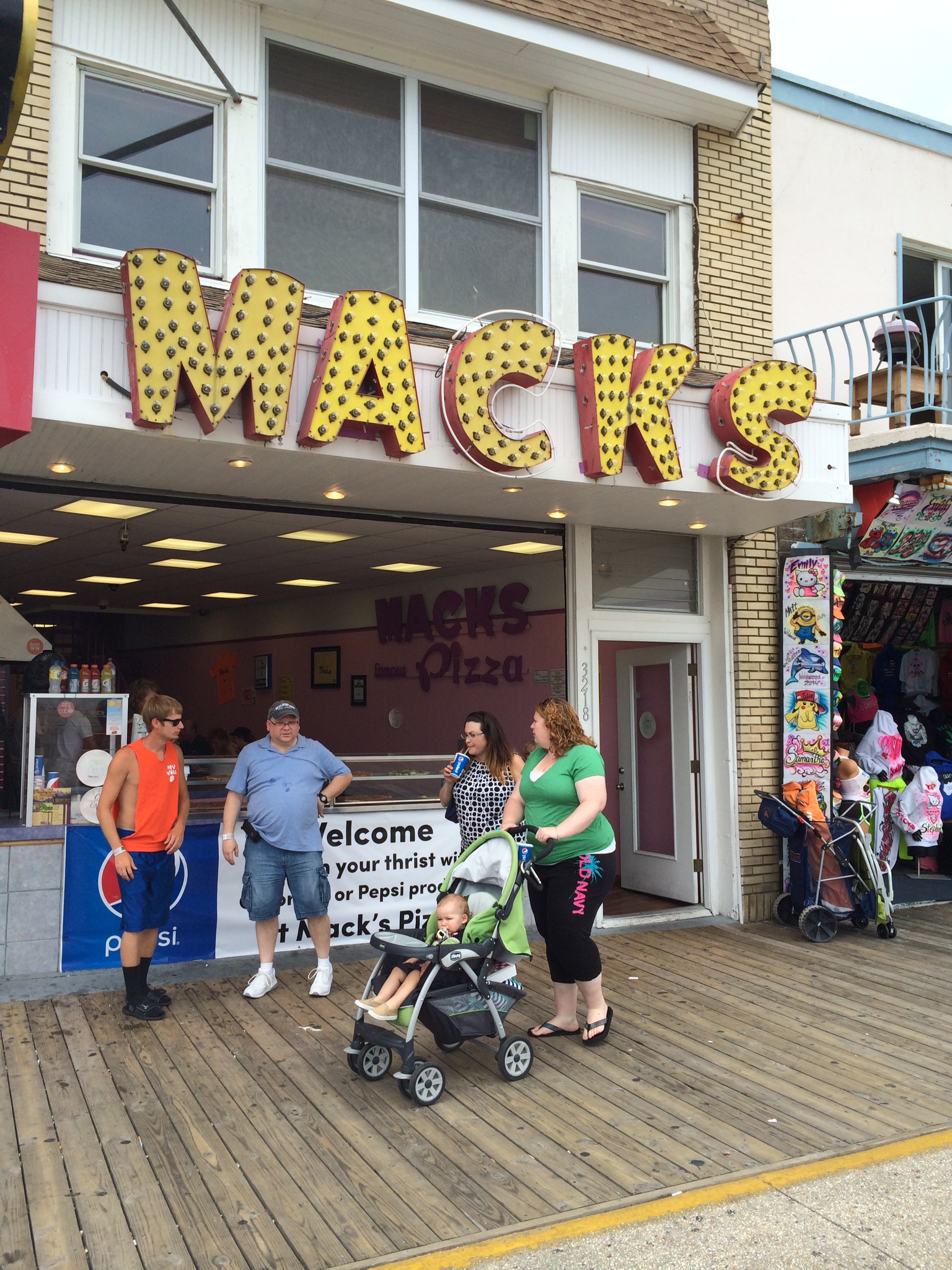 Laura's FudgeMack's PizzaI remember Wildwood Avenue because of two iconic stores. One is Laura’s Fudge where the poor guys who worked there had to constantly mix vats of fudge in the front window. Laura’s is still there. The other was the lobster restaurant, a predecessor to the Lobster Shack which on that location now. Much to my chagrin we would have dinner there once a year. I wasn’t much of a foodie when I was little and I was concerned the lobster dinner was cutting into my boardwalk time. My preferred dining location was the Mack’s Pizza a half block away on the boardwalk, where I could buy a slice or two and keep going without losing time by sitting at a table.