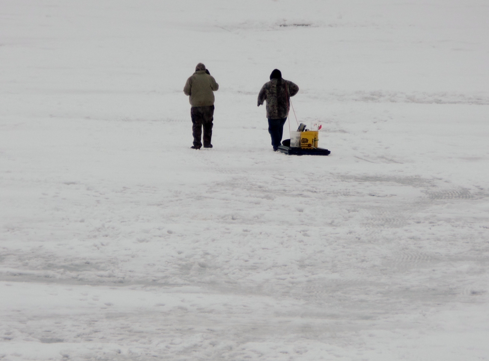 Ice fishing on the lake.