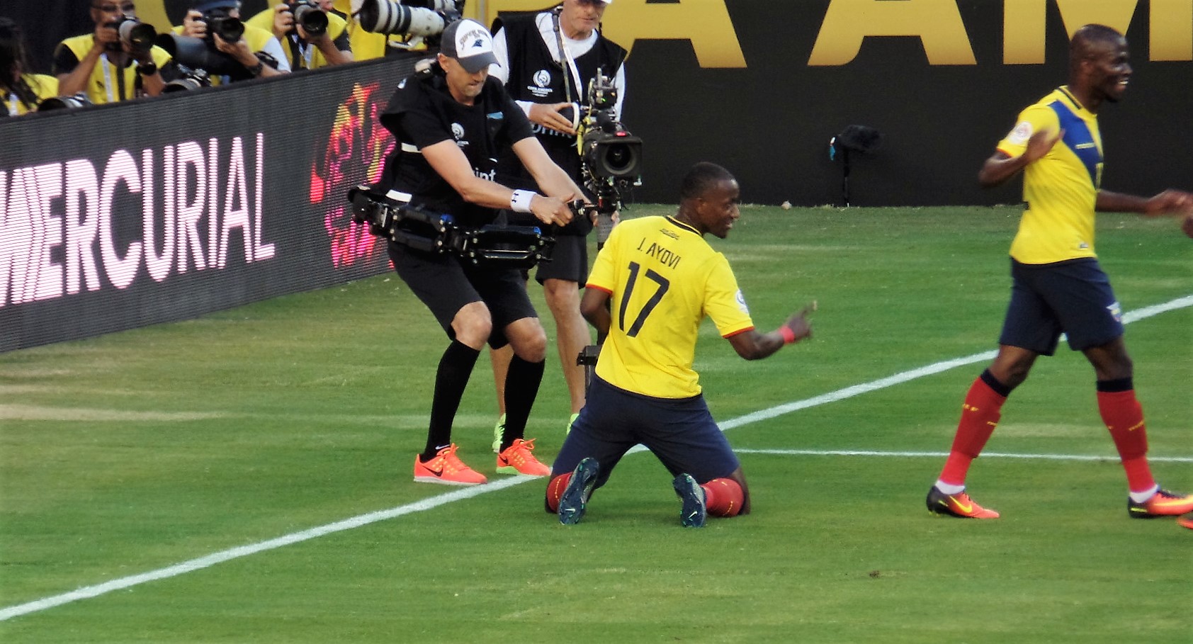 Ecuadori players celebrate a goal at Copa America