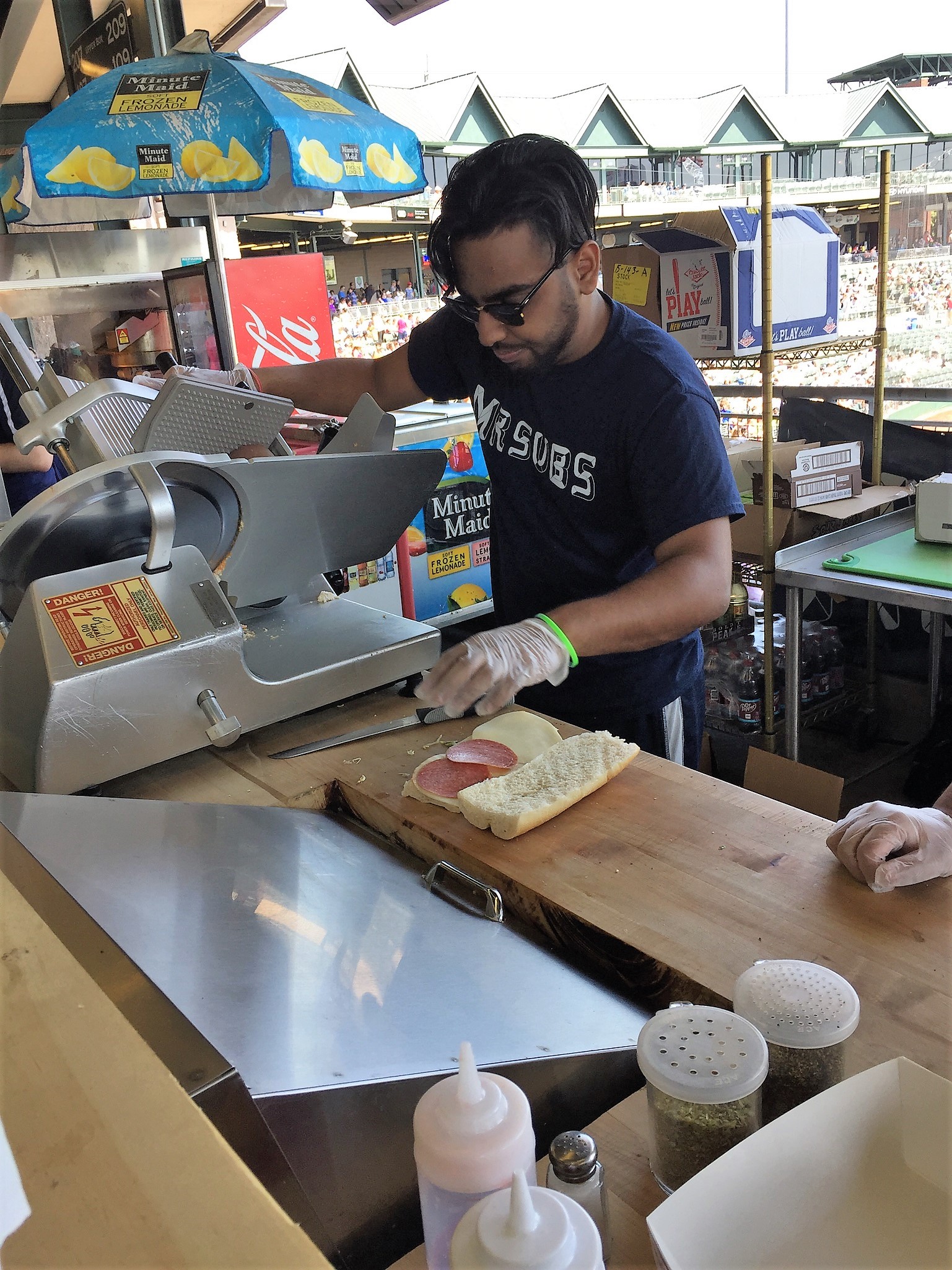 Making a sandwich at Mr. Subs