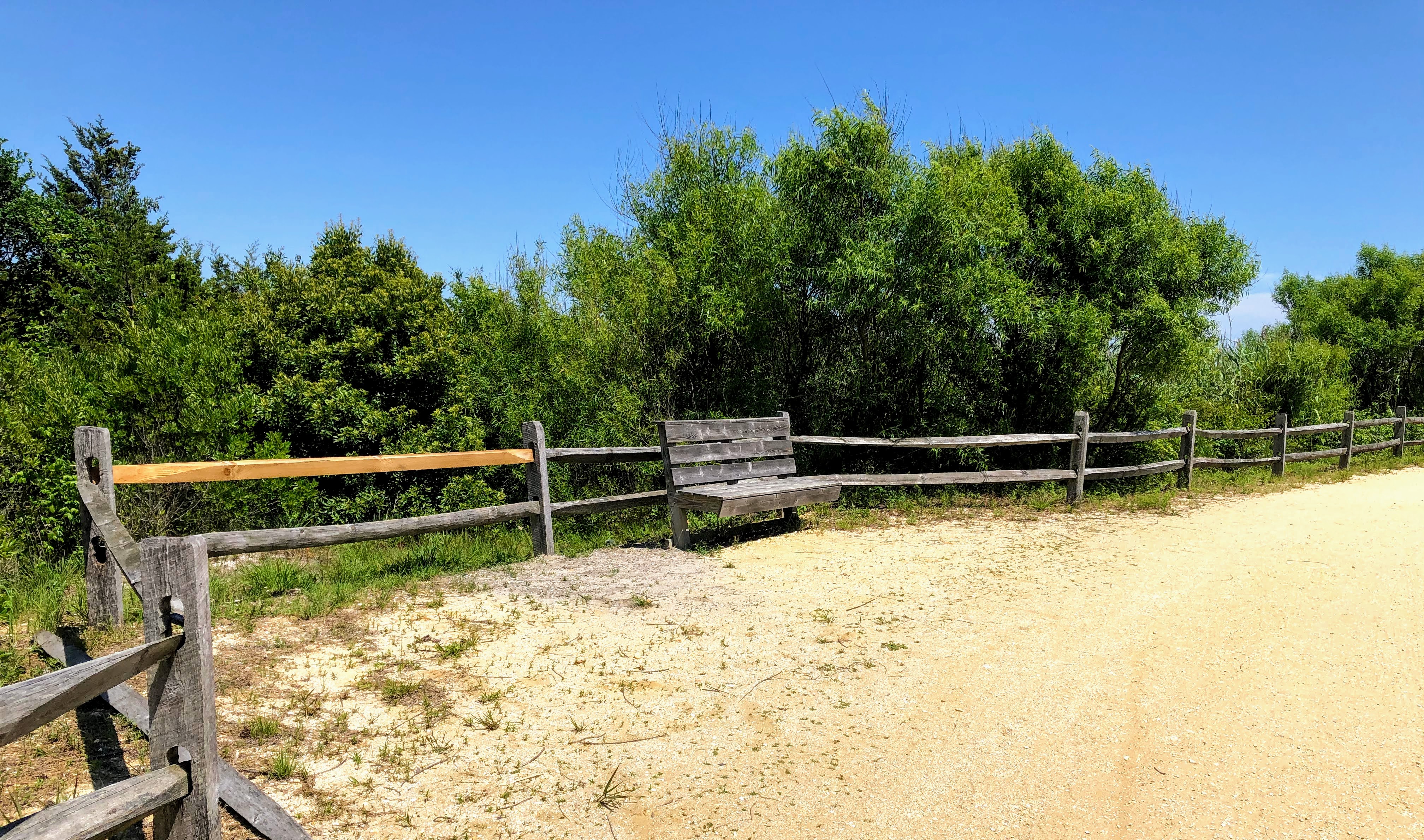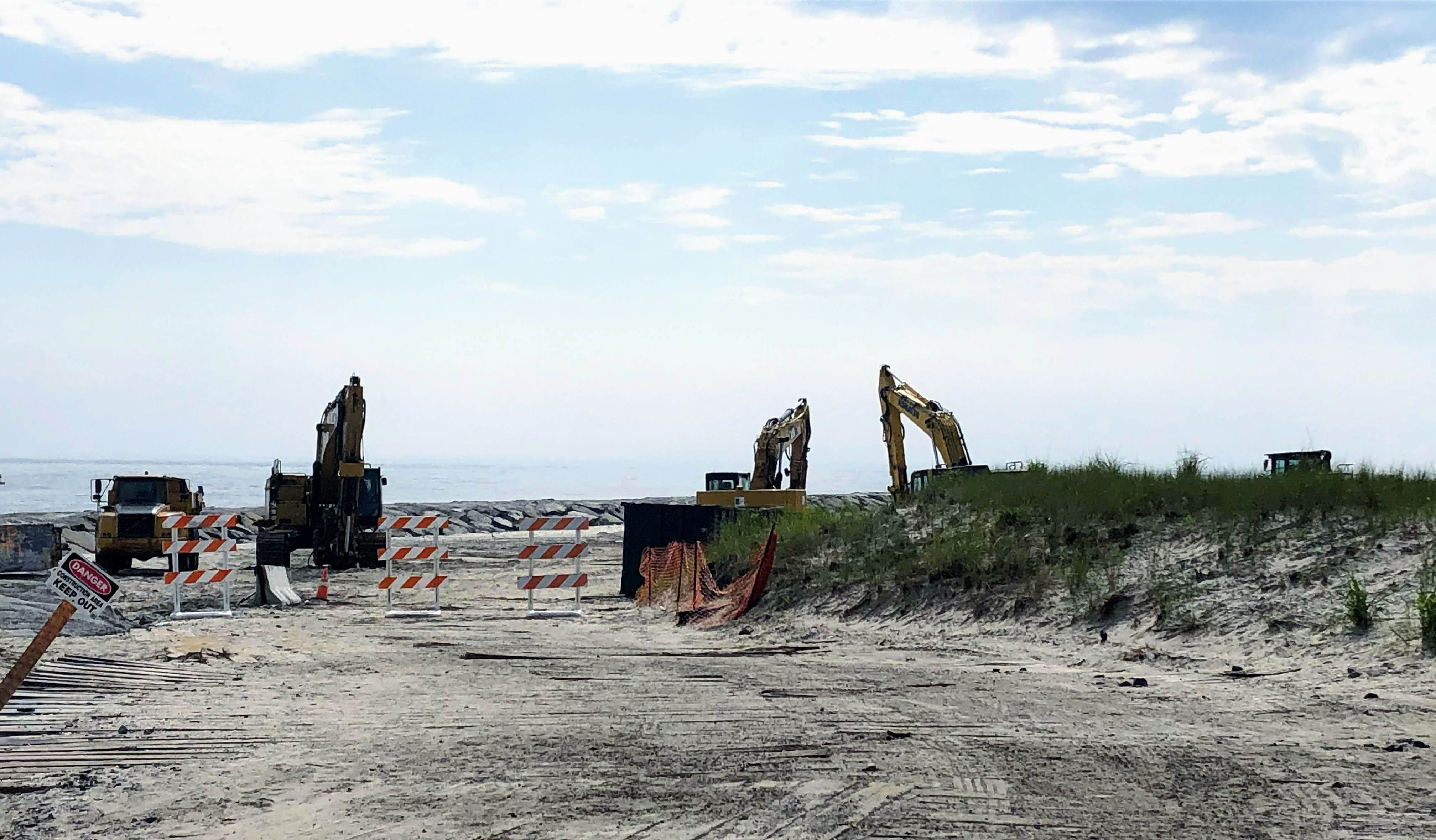 Ocean currents pick up sand from the north end of the island and move it south. Below is a photo of dune repair being done at the north end in Avalon followed by a photo of the south end, the Stone Harbor Point protected conservation area.