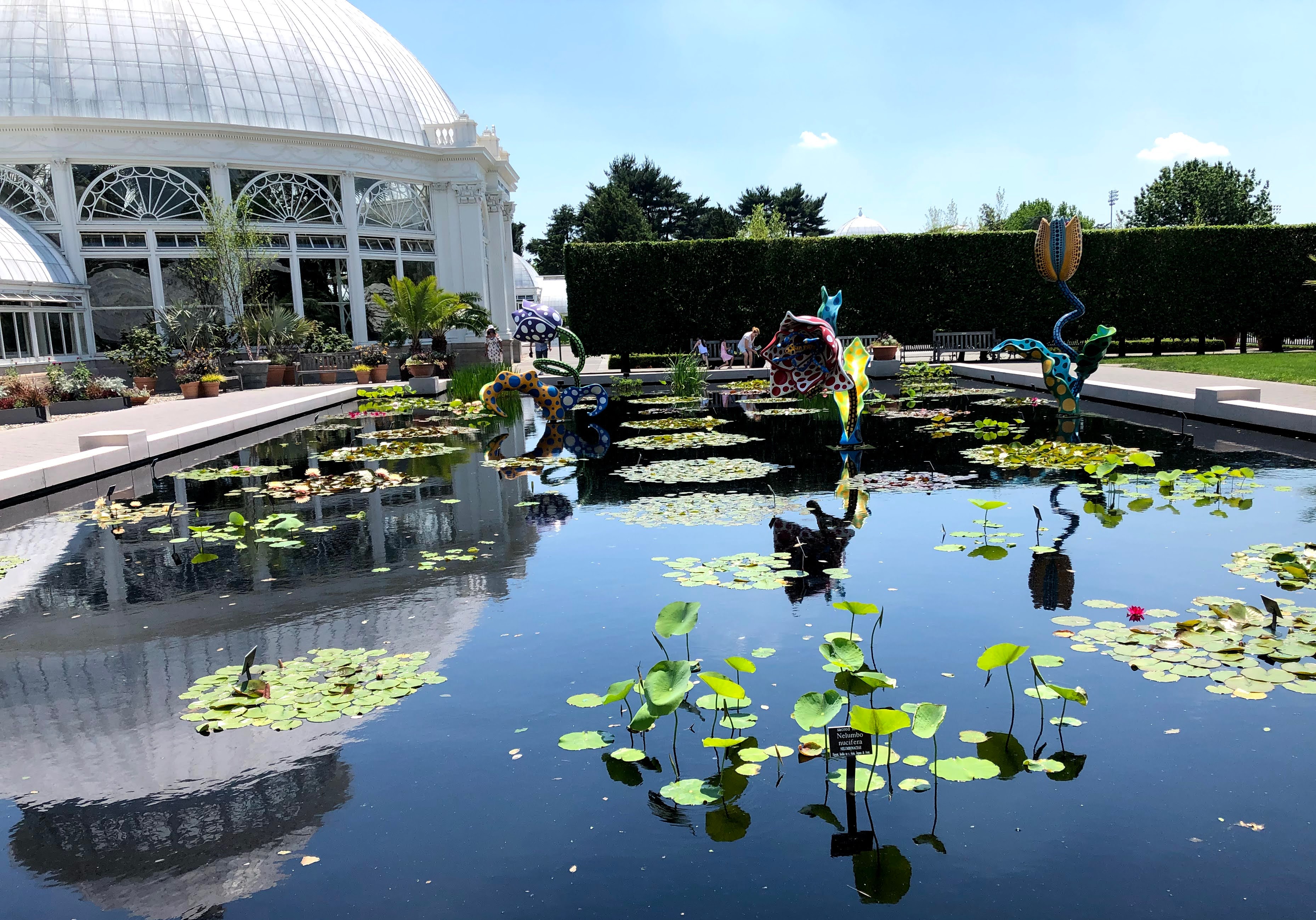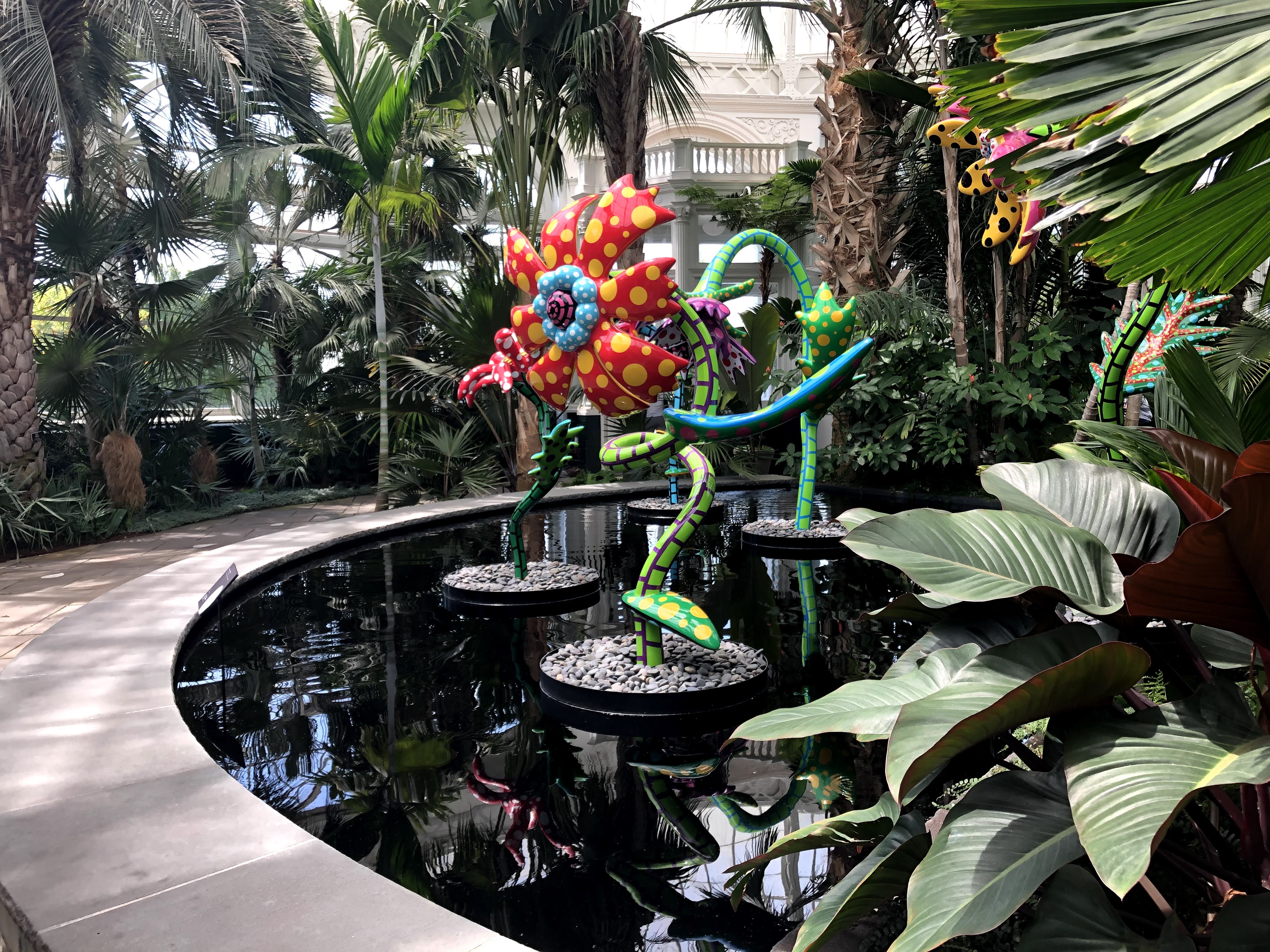 Yayoi Kusama is a 92-year-old contemporary artist from Japan. Known mostly for sculpture and installations, her works are currently on display at the New York Botanical Garden. The NYBG exhibit, titled Cosmic Nature, is focused on the natural world. Originally trained as a painter, Kusama was a follower of 1960’s counter-culture and at one time organized “happenings” with naked participants painted with polka dots. Lots of polka-dots in the new exhibit…but no nudity.