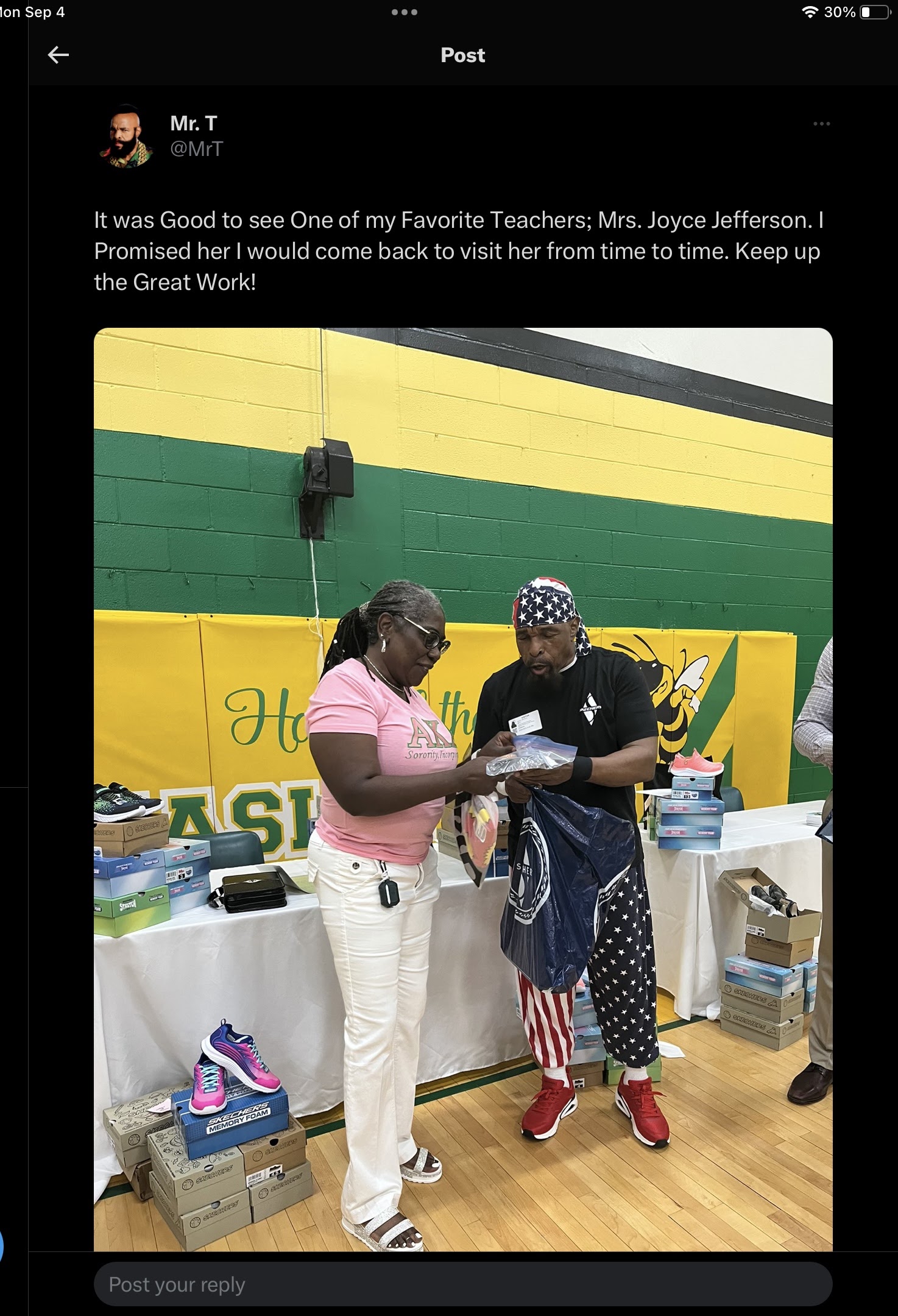 Mr. T, now 71, remains a deeply religious man. He has a home in the city of his birth as well as one in Albuquerque. You can catch up with him on the site formerly known as Twitter. Many of his tweets are biblical quotes. But you can also catch a glimpse of what he’s up to.