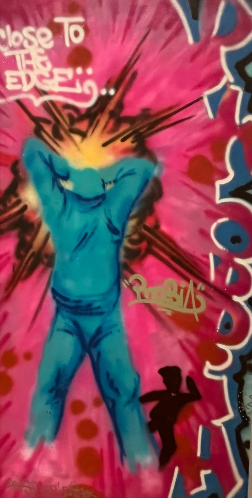 These works were donated to the museum by Chinese American painter Martin Wong. He had befriended many of the young artists who were creating graffiti in 1980’s New York and collected their works. He co-founded the Museum of American Graffiti in the East Village in 1989. Issues with the space, the top floor of a townhouse, caused the museum to close after six months.