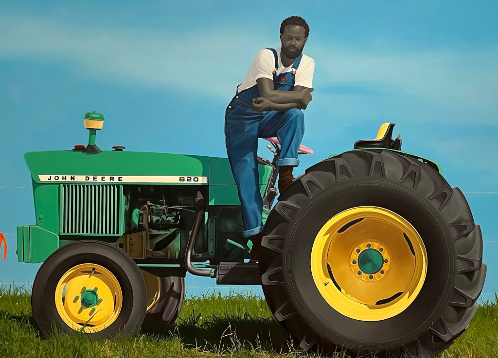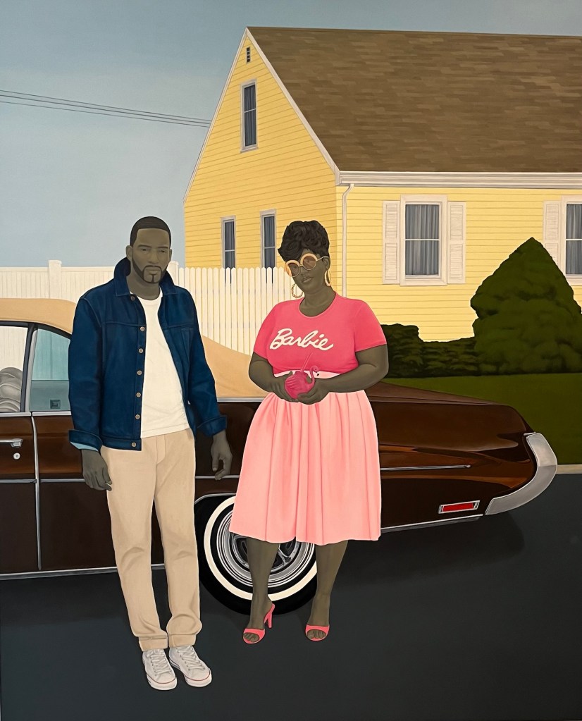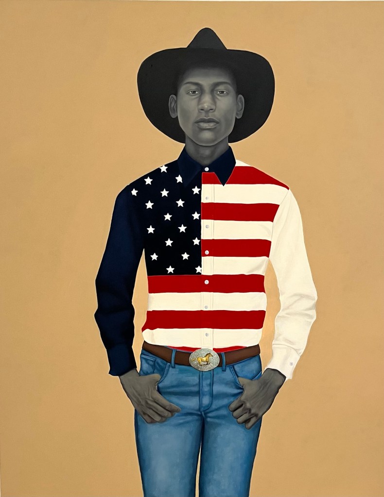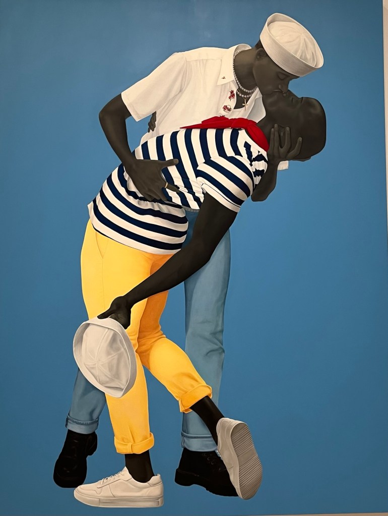 I’ve seen the term “simplified realism” applied to Sherald’s style. I’m not sure that does it justice, but whatever it’s called, she maximizes the impact.