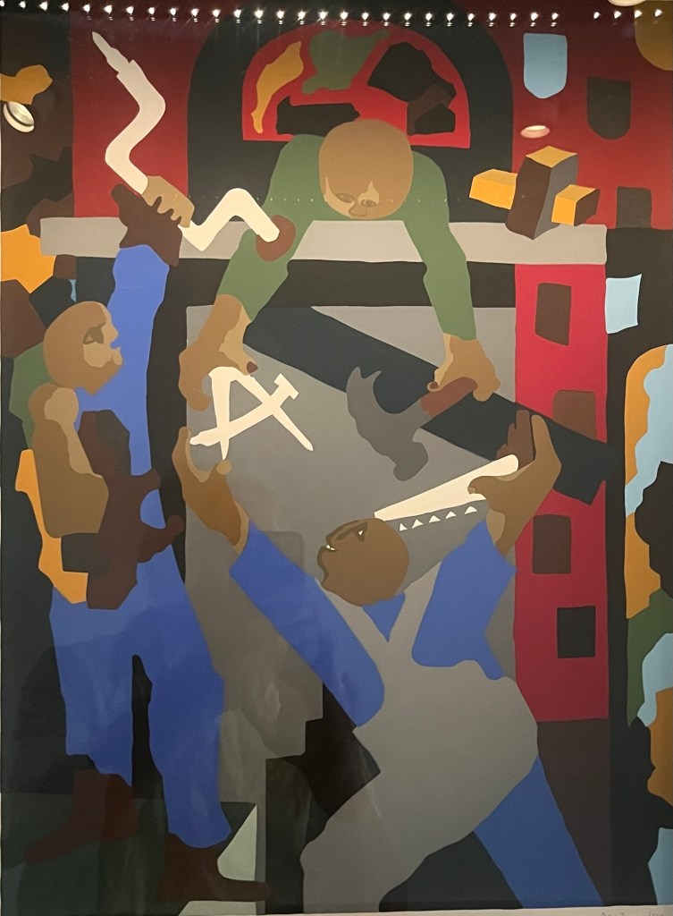 LeRoi Jones would later change his name to Amiri Baraka. His son, Ras Baraka, is currently the mayor of Newark, N.J. Ras Baraka was arrested by Homeland Security earlier this year outside an immigrant detention facility. The nonsense charges against him were dropped before they went to court.Gimme That Old Time Religion, Carolyn MazloomiBuilders: Stained Glass Window, Jacob Lawrence